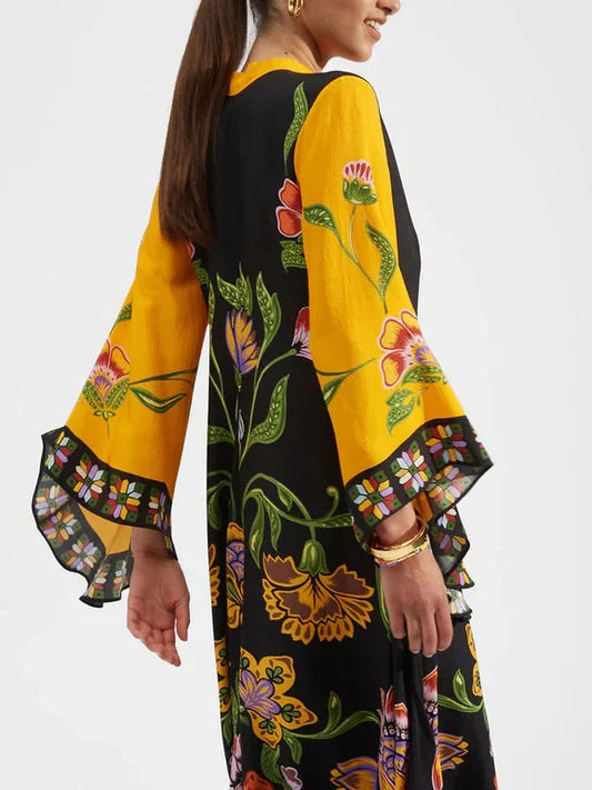 Chic Floral Print Maxi Dress with Flowing Waterfall Sleeves